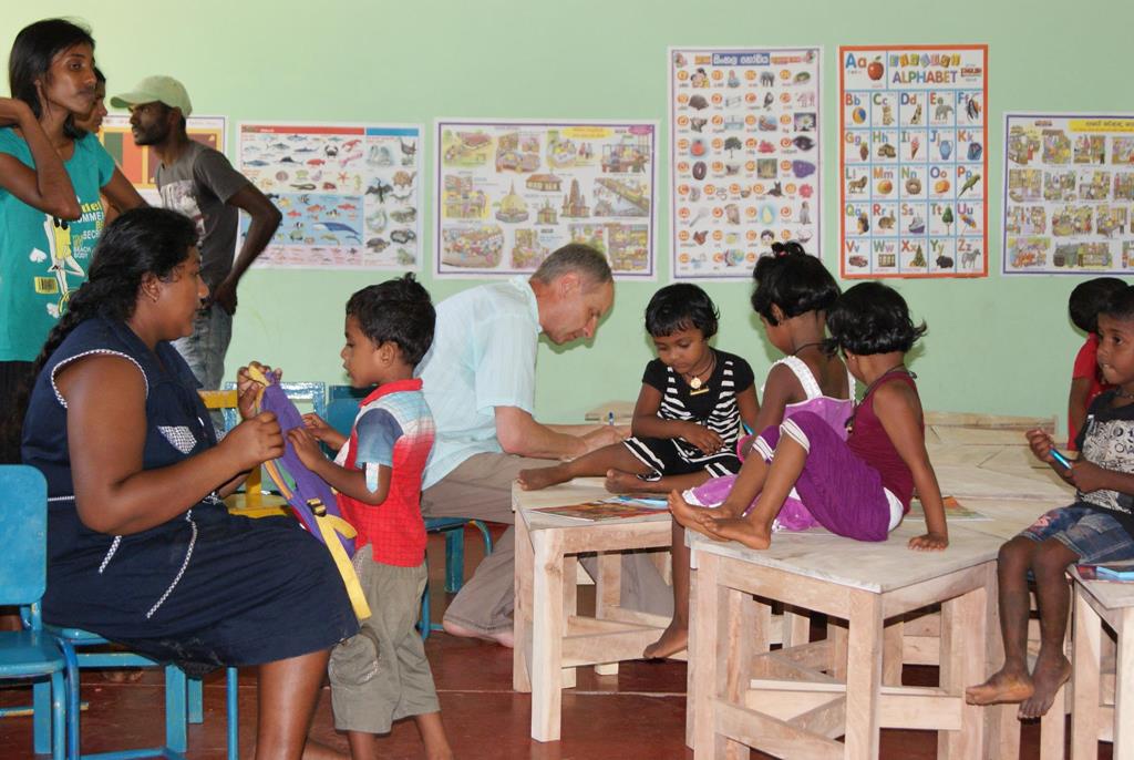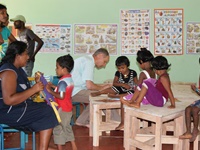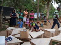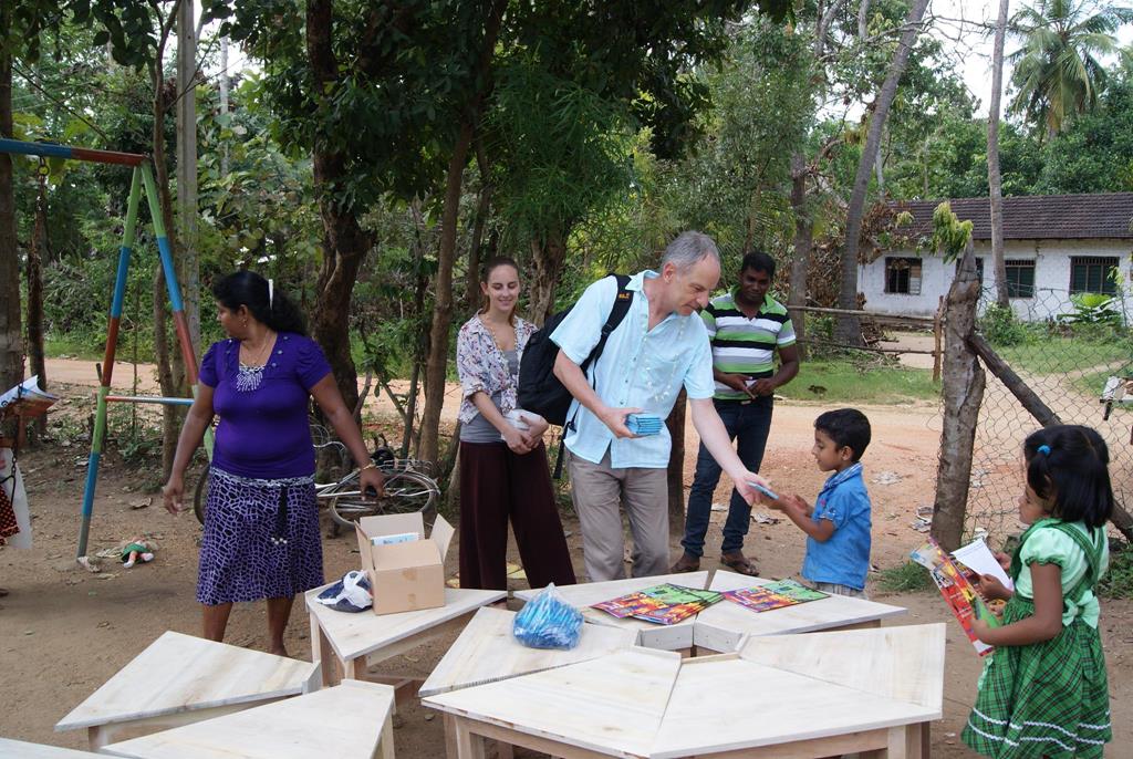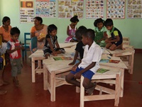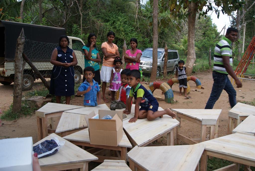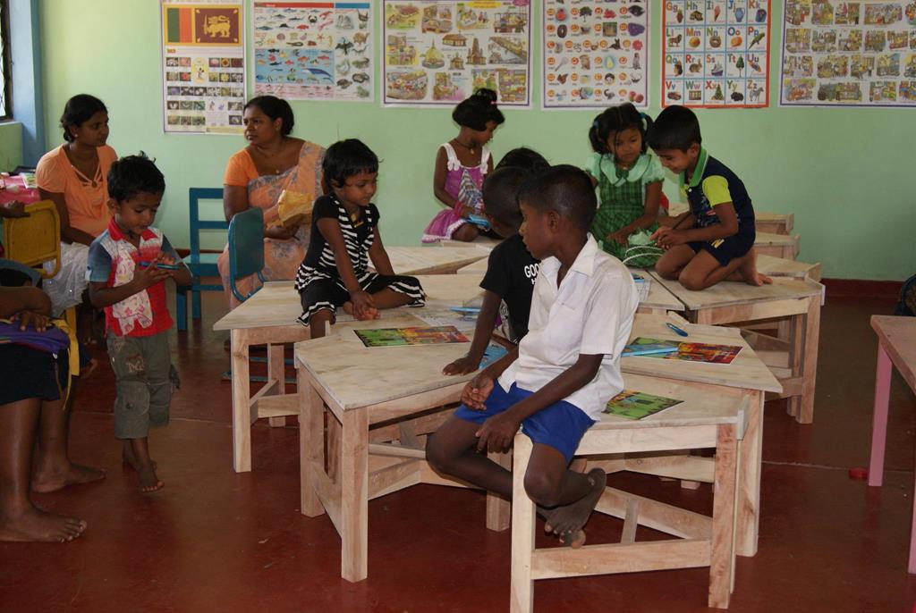 Eine Vorschule im Ort erhielt neue Tische aus Mangoholz im Wert von 1.000 US-Dollar. Die Lehrerin und die Kinder freuten sich über die neue Einrichtung sowie über die Malbücher und Buntstifte.
